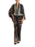 MORPHEW ATELIER Grey & Black Silk Hand Embroidered Floral Piano Shawl Cocoon With Fringe