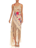 MORPHEW ATELIER Beige Bias Cut Fringed Dress Made From 1920S Hand-Embroidered Silk