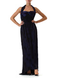 1950S PIERRE BALMAIN Black & Blue Haute Couture Silk Organza Beaded Trained Gown With Satin Bodice Bow