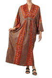 Orange & Black Indian Block Printed Silk Butterfly Sleeve Kaftan Dress