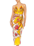 Yellow & Red Bias Cut Silk Jacquard Sagittarius Multi-Way Scarf Dress