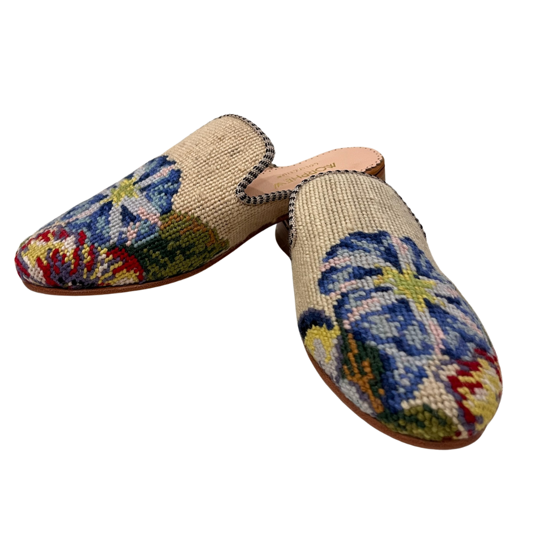 Morphew Collection needlepoint floral Canvas Mules Sz.38