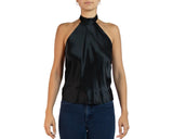 MORPHEW COLLECTION Black Charmeuse Halter Tie Scarf Top