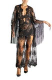 1920S MORPHEW ATELIER Black Antique Lace Piano Shawl Gown
