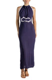1960S Navy Blue & White Floral Applique Dress