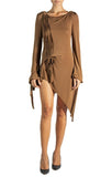 1990S ALBERTA FERRETTI Brown Poly/Rayon Tie Dress