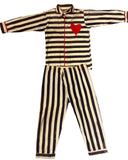 1950S Purple & White Striped Cotton Heart Pocket Pajamas Two Piece "Prisoner Of Love"