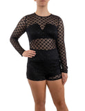 Black Poly/Rayon Spandex Lace Long Sleeve Romper