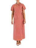 1940S Red Cotton Yellow Dot Print Wrap House Dress