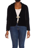 1930S Black Silk Velvet Shawl Collar Evening Jacket With Art Deco Clasp