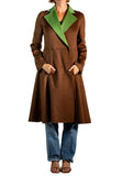 2000S TSE Dark Chocolate Brown Luscious Double Faced Cashmere Two-Tone Green & Coat