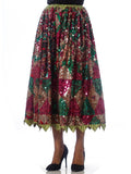 1950S Red & Black Cotton Fully Sequined Skirt With Mexican Folk Scenes