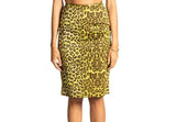1990S Lime Green Leopard Print Cotton Sateen Pencil Skirt
