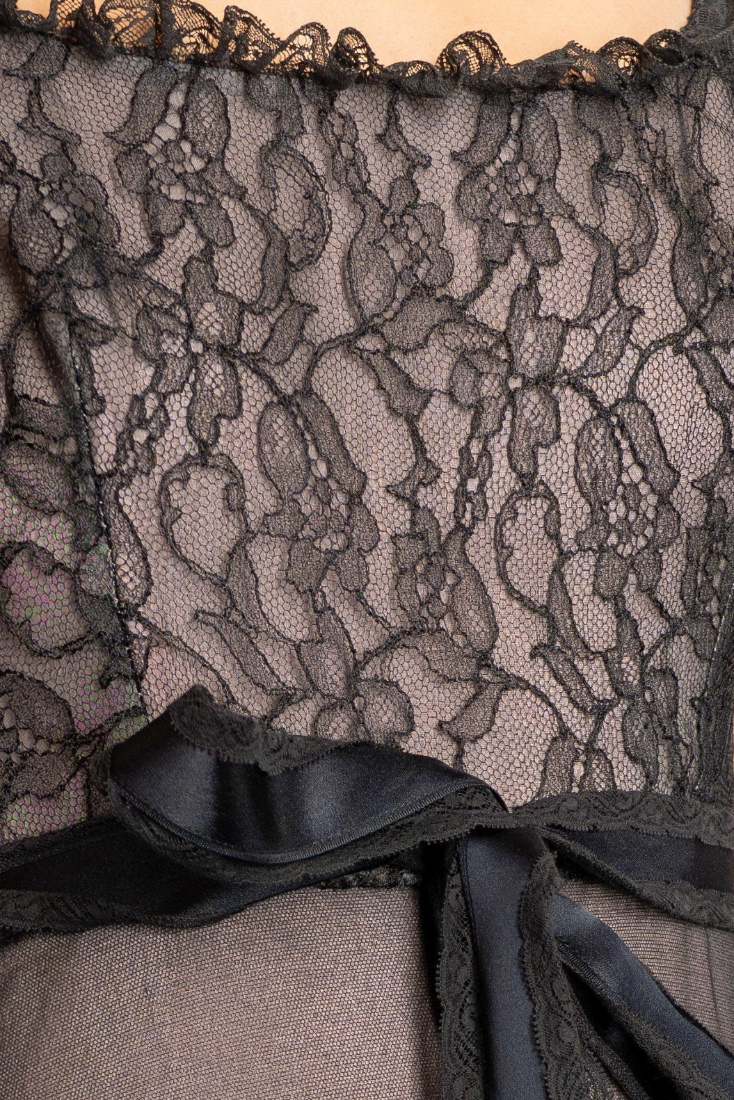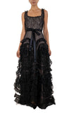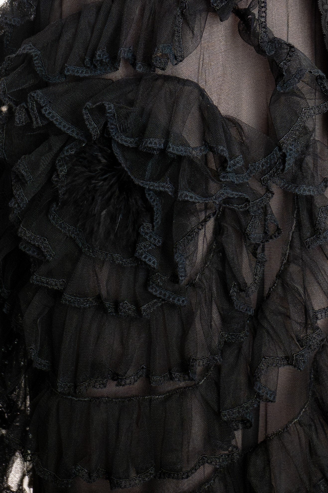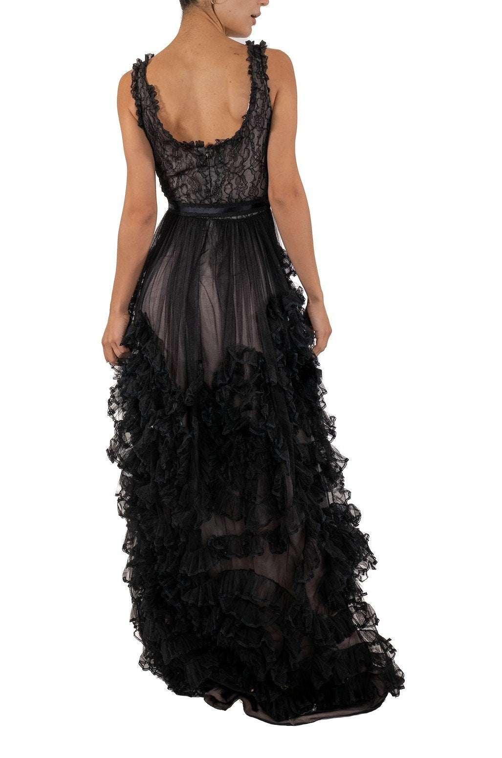 1990S Black Silk Chantilly Lace & Net Ruffled Ball Gown Lined In Lilac Charmeuse