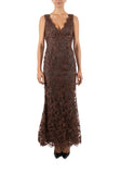 1990S Chocolate Brown Rayon & Silk Burnout Chiffon Gown