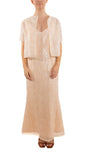1990S Pastel Peach Pink Sequined Lace Silk Lined Gown