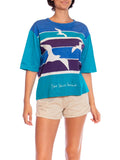 1970S YVES SAINT LAURENT Blue & Teal Cotton Jersey Rare Seashore Print T-Shirt