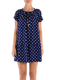 1980S YVES SAINT LAURENT Navy Blue Polka Dot Silk Jacquard Baby Doll Dress