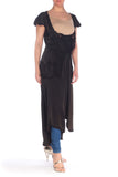 Edwardian Black Silk Satin Low Scoop Dress For Layering