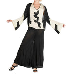 1920S Black & Cream Nylon Jersey Art Deco Negligee With Jacket