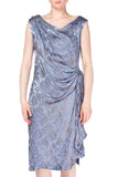 1920S Blue Silk & Silver Floral Lamé Draped Cocktail Dress