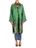 1930S Jade Green Hand Embroidered Silk Satin Jacket With Red & Pink Flowers