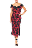1950S PEGGY HUNT Black & Red Silk Taffeta Chantilly Lace Cocktail Dress
