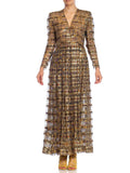 1970S Black, Gold & Yellow Metallic Silk Lurex Chiffon Stripe Gown With Long Sleeves