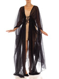 1970S Black Rayon Sheer Draped Robe