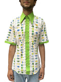1970S OXFORD Light Green Geometric Cotton “We Love Girls” Men Shirt