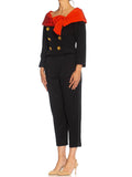 1980S LACROIX Black & Red Haute Couture Silk Crepe Fitted Jacket With Off Shoulder Drape Artesinal Gold Buttons