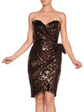 1980S THIERRY MUGLER Chocolate Brown Rayon Fully Sequined Strapless Cocktail Dress