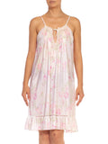 1980S White & Pink Nylon Floral Drawstring Straps Slip Dress