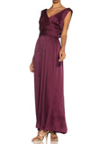 1980S YVES SAINT LAURENT Merlot Haute Couture Silk Satin Draped Gown With Sash Belt