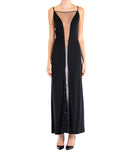 1990S Jiki Black Slinky Rayon Deep V Gown With Crystal Covered Sheer Mesh