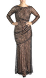 2000S Black & Nude Lace Sequined Gown Long Sleeve