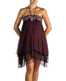 2000S DOR-RI Burgundy & Silver Silk Tulle Cocktail Dress