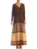 MORPHEW COLLECTION Boho Long Sleeve Maxi Dress Made From Antique 1920S & 1970S Fabrics