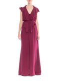 2000S CAROLINA HERRERA Cranberry Red Silk Jacquard Button Front & Trained Gown With Slit
