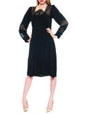 1930S Black Silk Faille & Lace Collared Dress With Sleeves Deco Glass Buttons