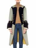 Victorian Grey & Black Wool Velvet Men's Frock Coat With Metal Braiding And Gold Buttons