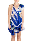 Cobalt Blue Floral Japanese Kimono Silk Jacquard Cocktail Dress With Victorian Lace.