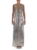 Silver Metal Chainlink Gown With Vintage Haute Couture Christian Dior Rhinestone Trim