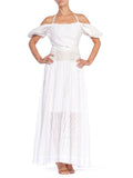 MORPHEW COLLECTION White Organic Cotton Backless Off Shoulder Maxi Dress Made From Victorian & 1930'S Lace