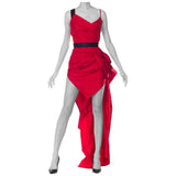 Lipstick Red & Navy Silk Taffeta Cut-Out Cocktail Dress