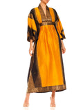 MORPHEW COLLECTION Saffron, Black & Gold Silk Kaftan Made From Vintage Sari
