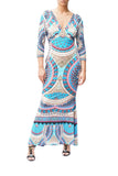 ROBERTO CAVALLI Electric Blue V Neck Kaleidoscope Pattern Long Dress